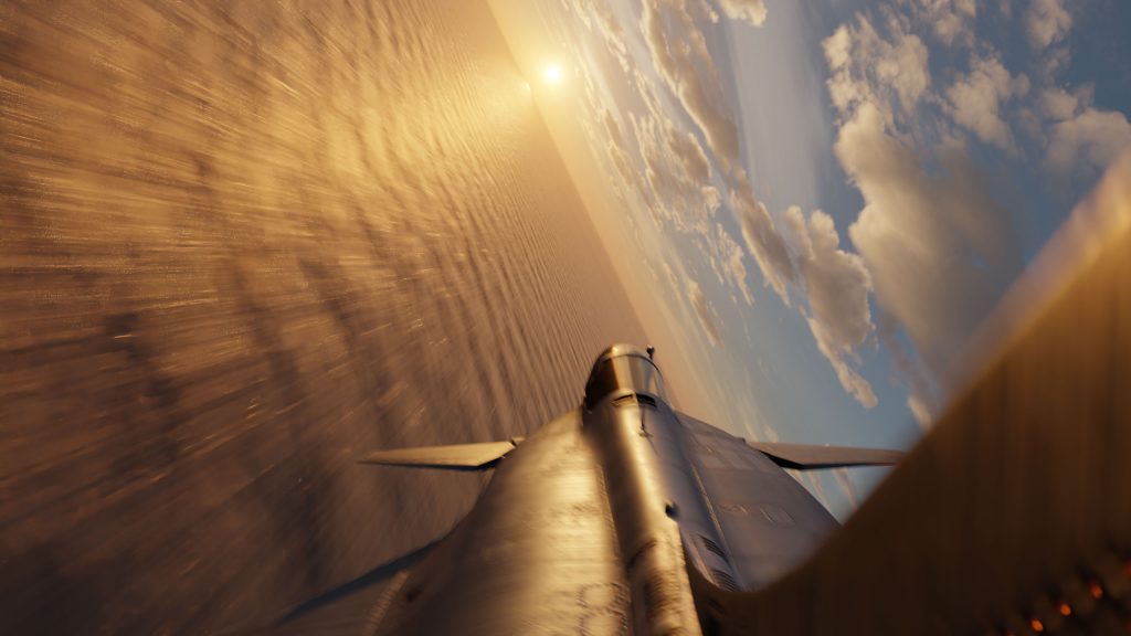Par conséquent vous serez transporté dans plusieurs environnements et situations dans lesquels l’avion peut se retrouver. Cette vidéo sera composé de 4 séquences, une dans une base militaire, une seconde de vol calme au dessus de l’océan puis une troisième pendant une scène de combat aérien et une quatrième à l’arrêt sur un porte avion.